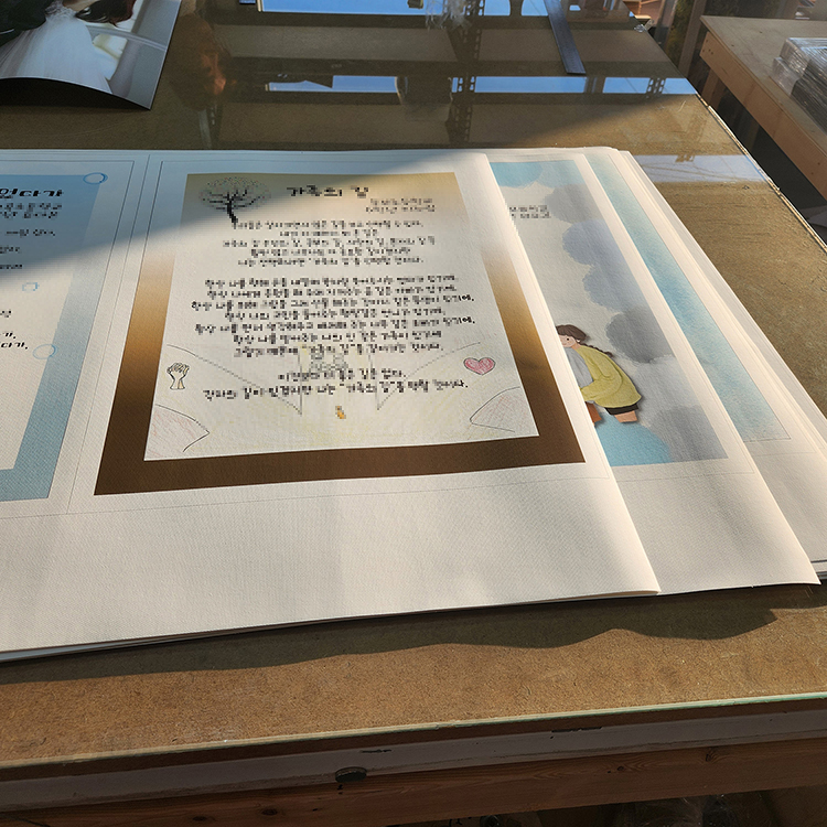 > 캔버스천에 직접인쇄하여 판넬작업도 바로 가능합니다.